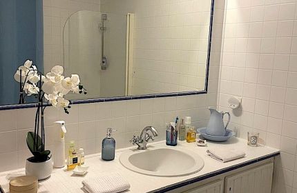 On the second floor there are another three double airconditioned bedrooms , one with two single beds wqhich can have another single bed put in it, one with a double bed 140 and the third with a double bed 140 and a single bed 90 plus a small sofabed with two ensuite shower rooms and one private bathroom with wc and basin.