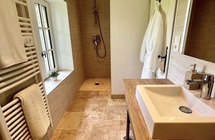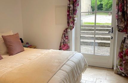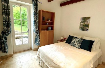 The wing comprises a large living room with open fireplace and 2 sofas , a double bedroom (with double bed 140), a second fully fitted and equipped kitchen with washing machine and dishwasher, a bathroom with wc, basin and shower and a private walled garden.