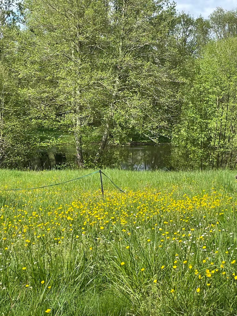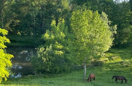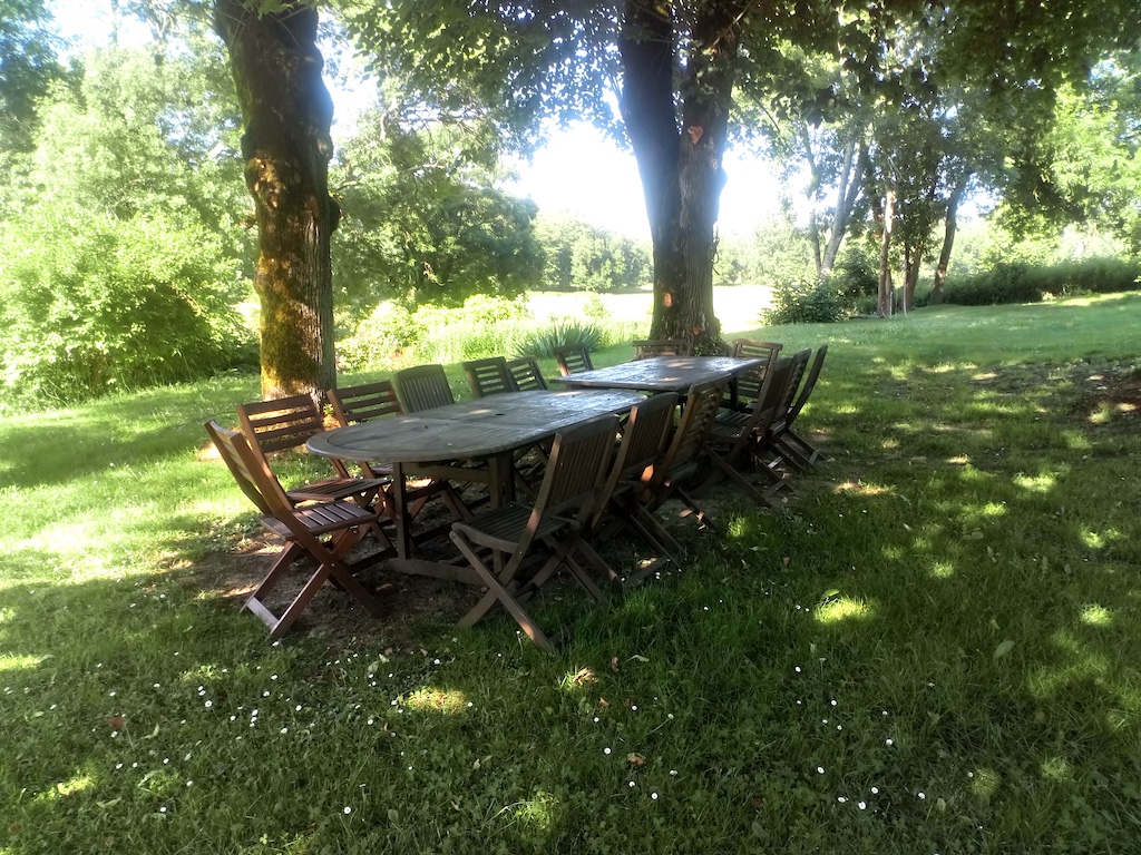 Aside from the heated pool (12 x 6 m2), the private tennis court and barn, the seven acre grounds also feature a large meadow garden, a small fishing/boating lake, where you can try your hand at catching one of the fat carp or simply watch them from our rowing boat, some lovely mature trees, all bounded by a delightful trout stream. From the house one can enjoy beautiful views over woodlands and fields and there is a hammock to relax in