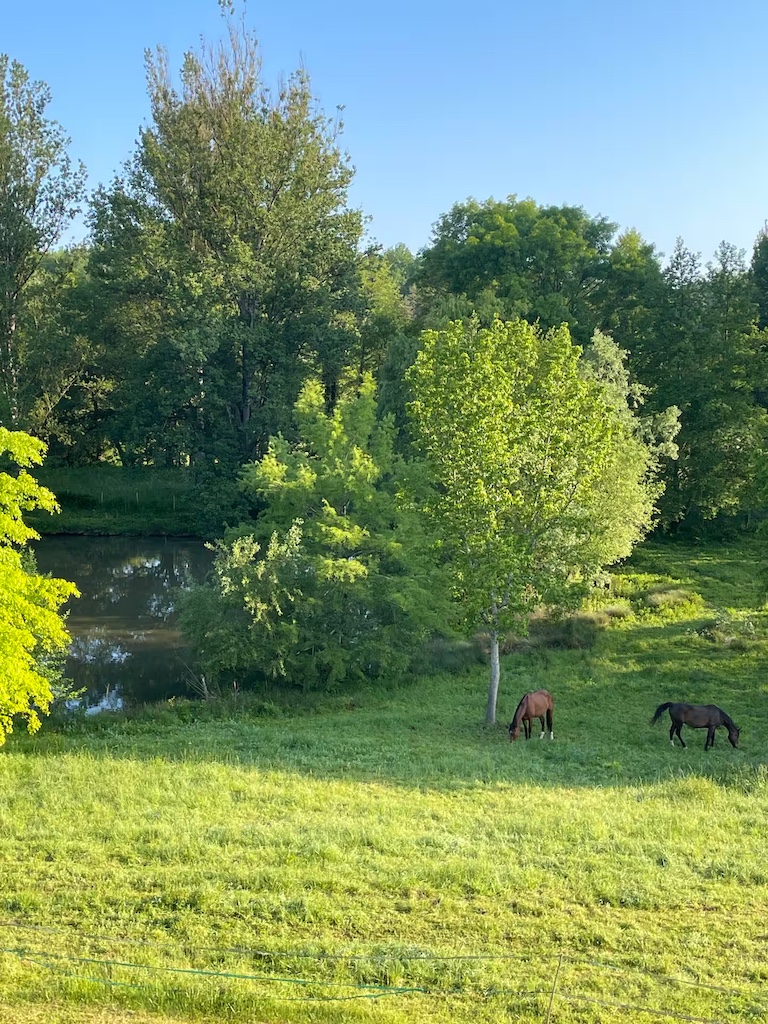 Aside from the heated pool (12 x 6 m2), the private tennis court and barn, the seven acre grounds also feature a large meadow garden, a small fishing/boating lake, where you can try your hand at catching one of the fat carp or simply watch them from our rowing boat, some lovely mature trees, all bounded by a delightful trout stream. From the house one can enjoy beautiful views over woodlands and fields and there is a hammock to relax in