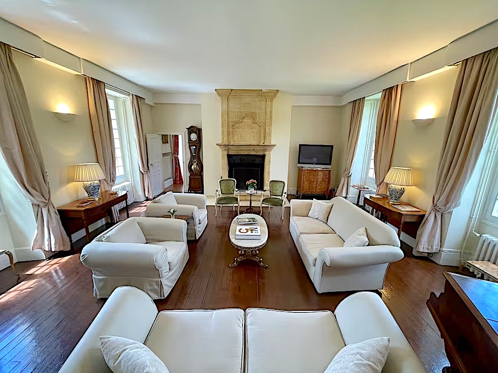 - the main living room (50 m2) with an open fireplace, a 42 inch plasma high definition TV with French and English satellite , video, DVD player, hifi and comfortable seating for a large number of people
