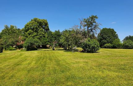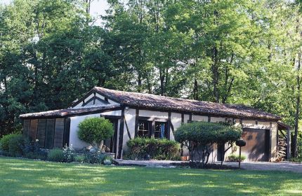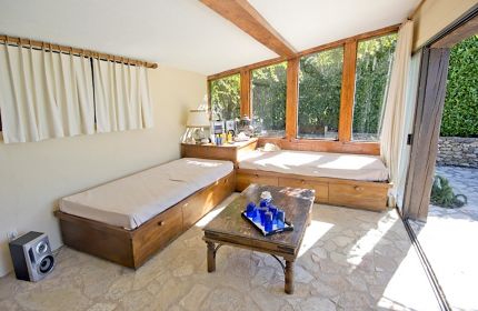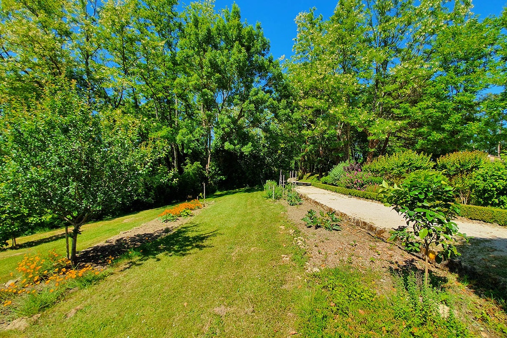 The house is approached by a steepish winding drive off a quiet country road and has ample space for parking. It is surrounded by 35 hectares of private grounds and a large variety of trees. In the center of the U shaped building is a south facing courtyard with a dining table and a wide sun umbrella.Accessed from the kitchen / dining area is another west facing terrace with a dining table, a large sun umbrella and a charcoal barbecue.