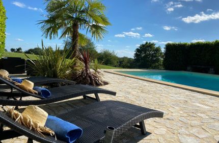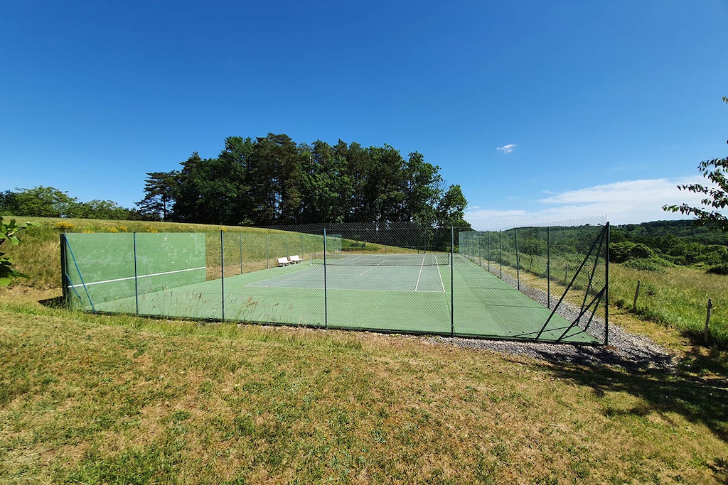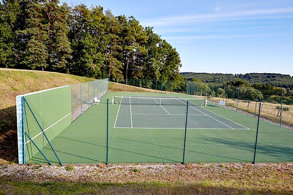 The all-weather tennis court has a practice wall at one end, and is green to blend in. Tennis, like the pool, is not visible from the house. It has Panoramic views over the surrounding countryside and the castle of Campagnac.