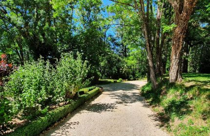 There is no tree surrounding the tennis court so that it is possible to play all day long and with no shade to alter the perspective or privilege a player vs. another. Fruit trees are on the way to the tennis for snack before/after an intense effort.